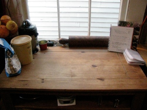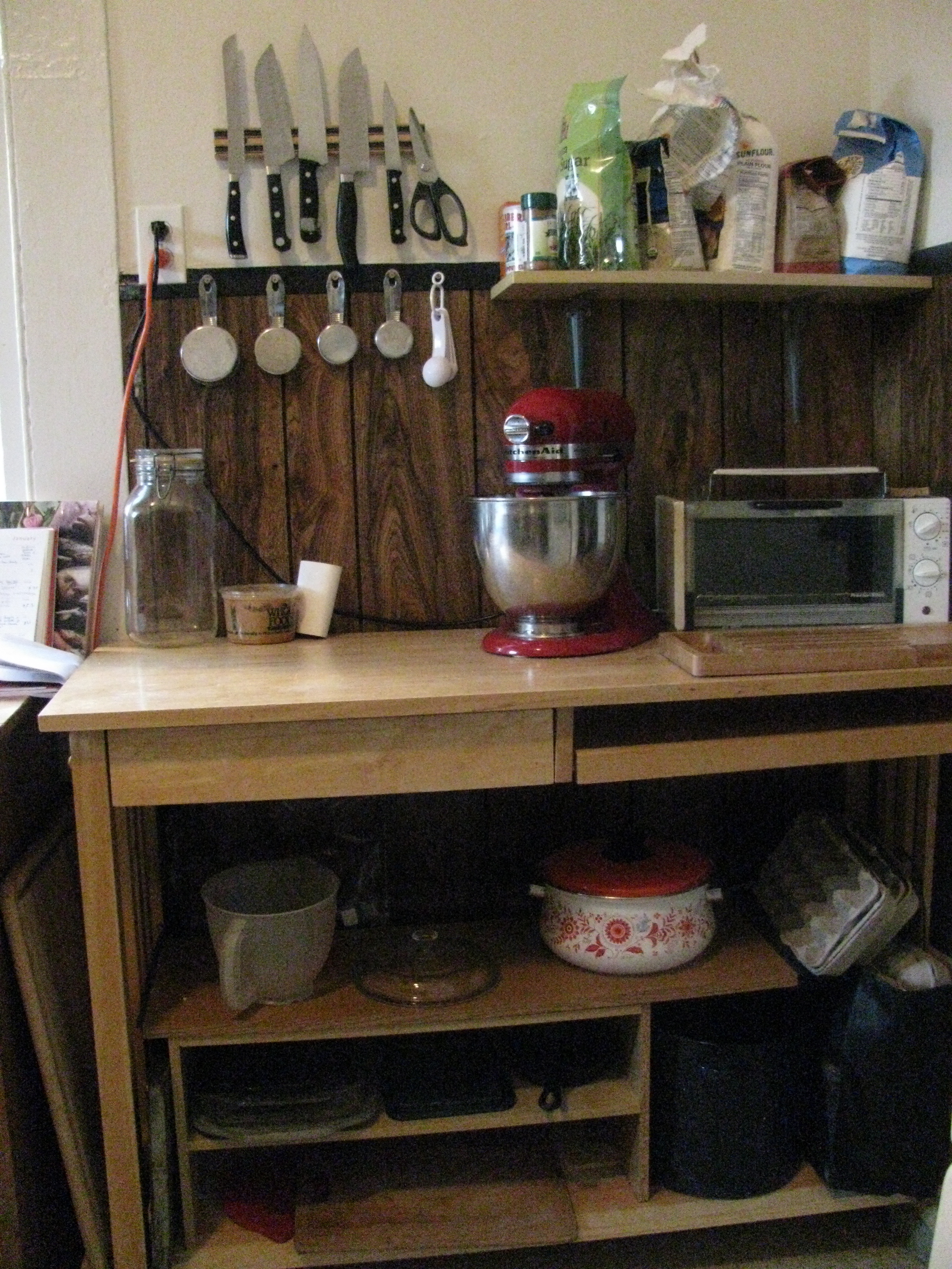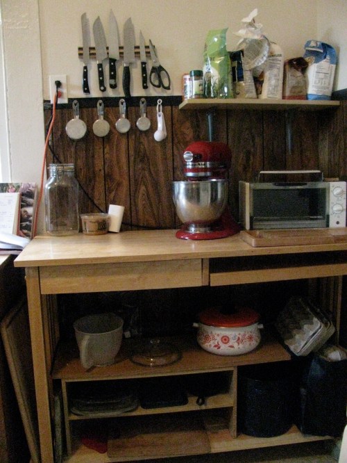 So, this area was not really in existence till two weeks ago, when I found the computer desk (way over on the left) that allowed me to move all the shit that didn’t need to be front and center, outa the damn way! I am so happy to now be the proud owner of such a lovely little Baking Center.