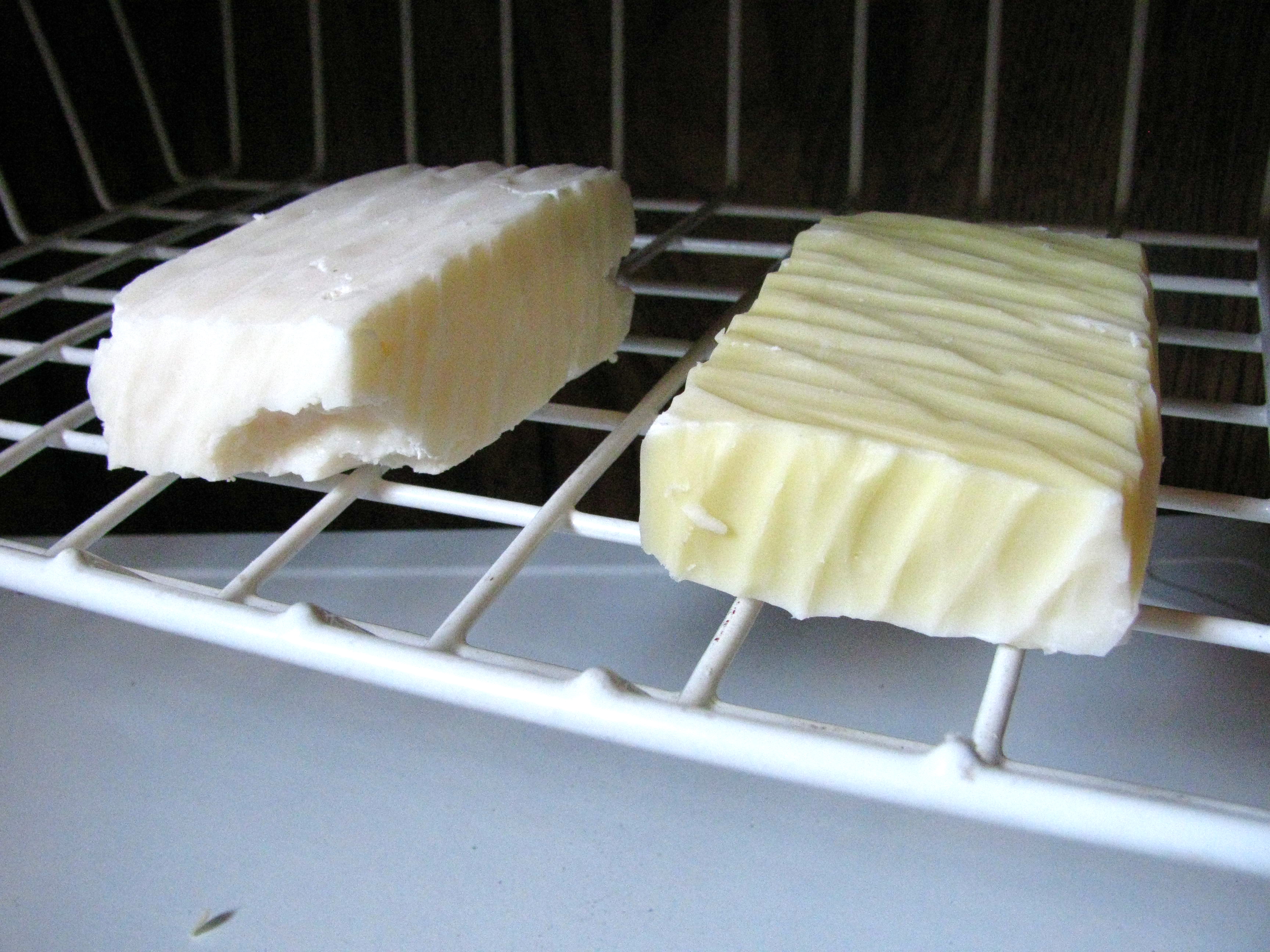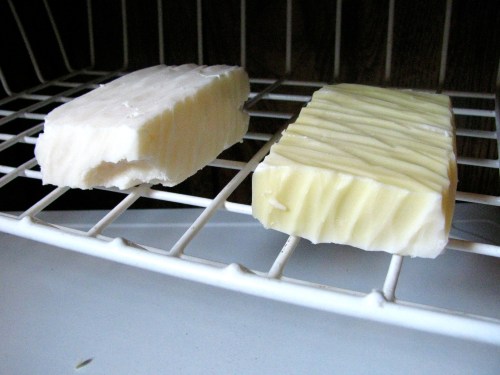 A second word to the wise, do not despair! If you have not taken the above advice, and find yourself in a similar situation, it all works out in the end! Your soap was not a failure, it will set up eventually. And scooping half set soap from one container into another makes for an ugly, lumpy and slightly crumbly soap, but if you’re planning to grate it up into dish soap, who cares?