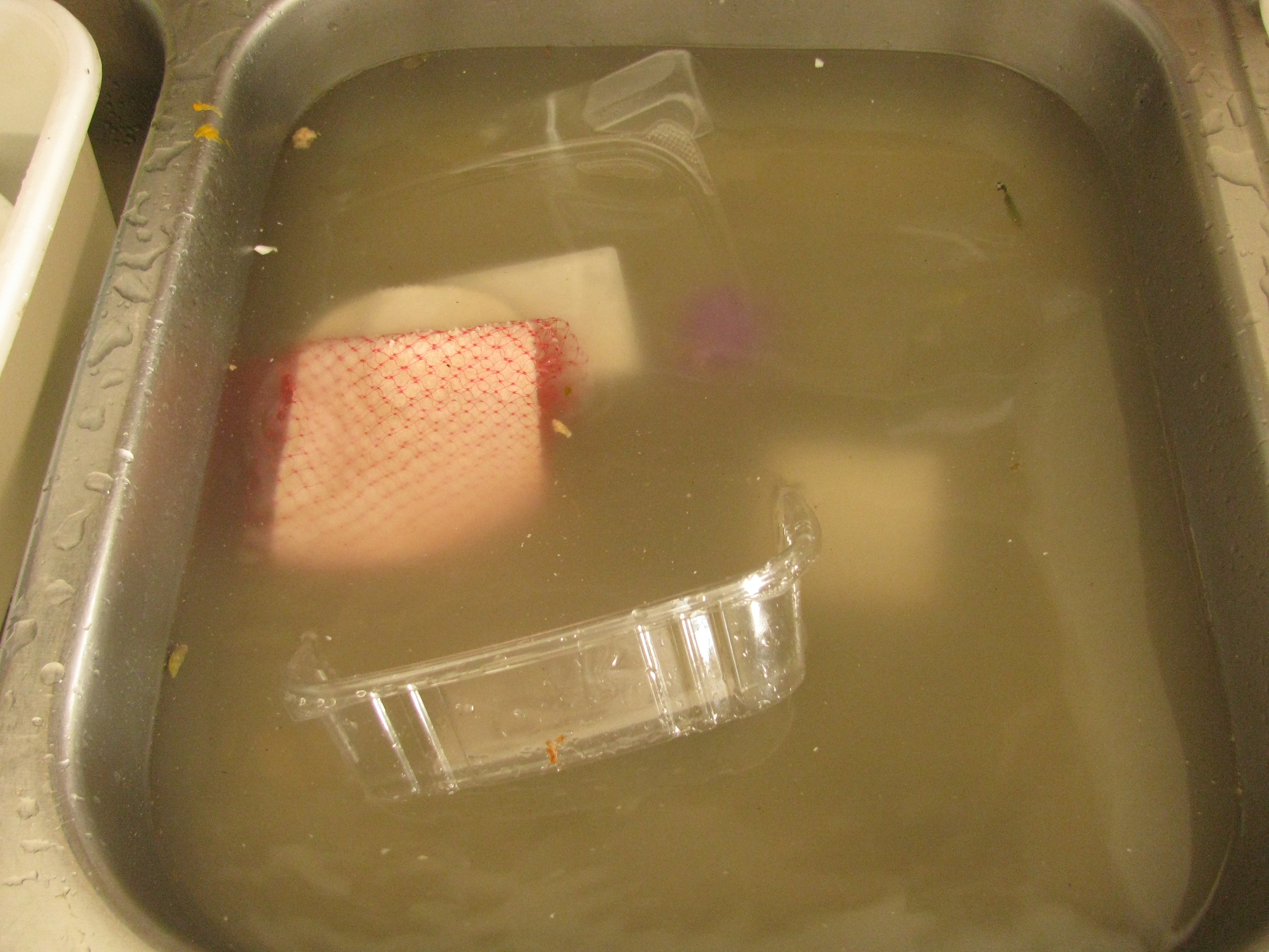 Why go to so much trouble, you might ask. Didn’t I already say how I don’t think commercial dish soap is top on any Evil Deeds list? Well, I think mostly I’ve persisted in this whole dish-washing experiment simply for the fun of experimentation. Dish-washing is a bore, when you have to do as much as I do. Why not stir it up with a little “Why in the hell is that happening?”, “How does this work?” and, especially interesting, “Can I figure out how to improve the situation?”