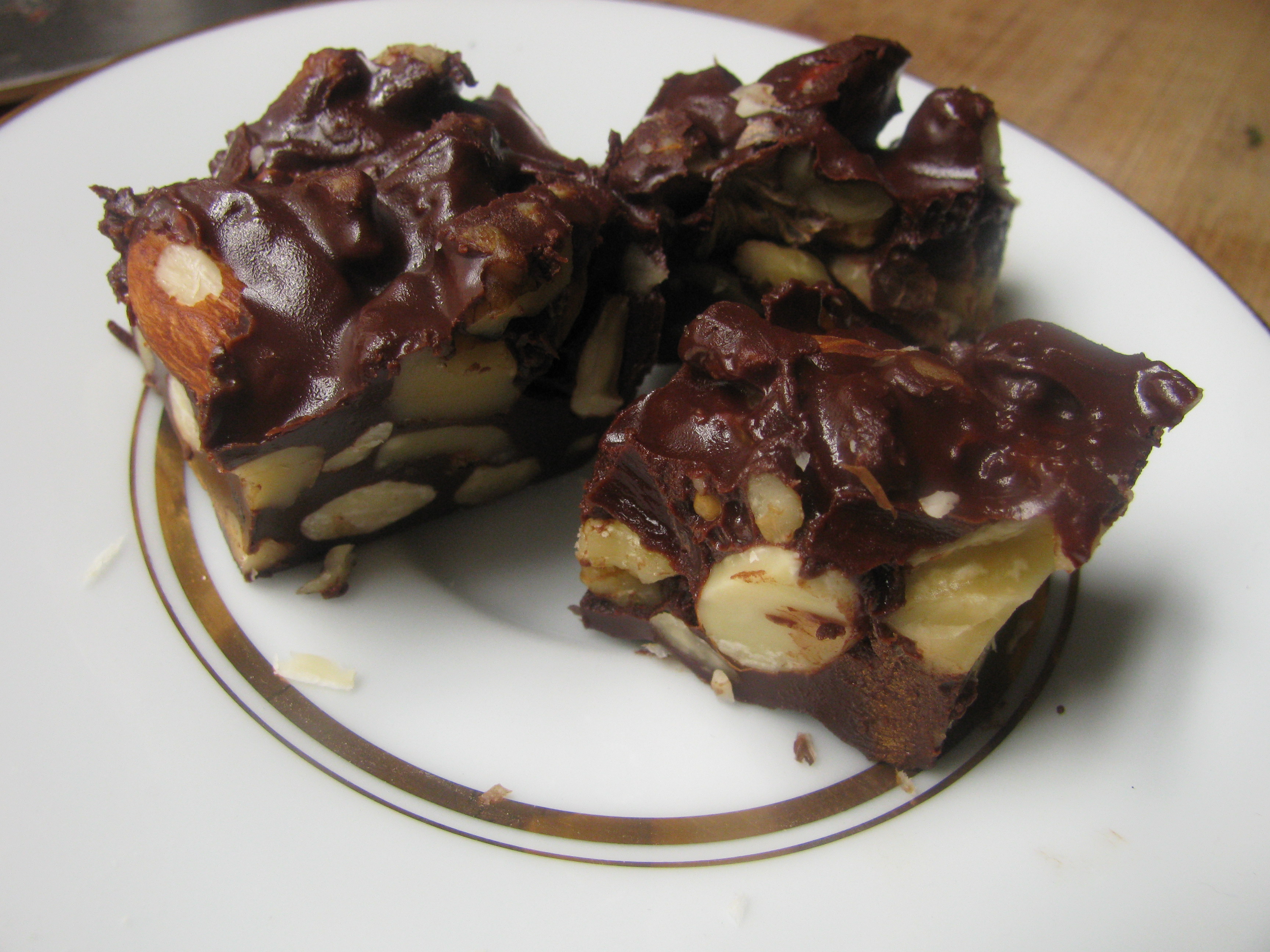 I’ve been dreaming up these chocolate-tooth cures for awhile, and finally got down to business. It’s not like it was hard. Little could be easier, once you’ve secured your fair-trade chocolate and organic nuts.