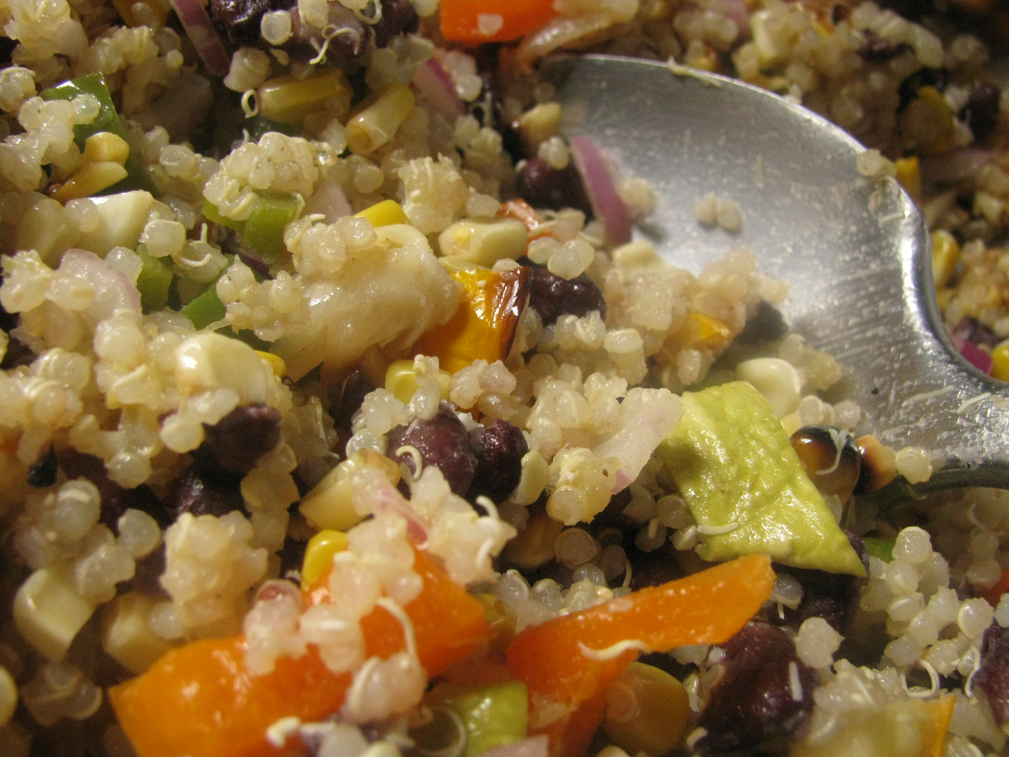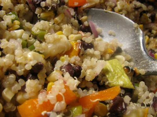 quinoa cooked in Trix, black beans too, under pressure, then frozen in pint jars. vegies on grill. yum.