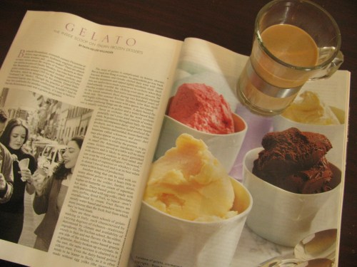 Yup, a little mental space is a necessity. And, oh yeah, I forgot to mention that I was also too excited to not try the second batch of ice cream in my new ($3 at a garage sale) ice cream maker. Chocolate gelato, there’s no way I was going to put that off for a more sane day.