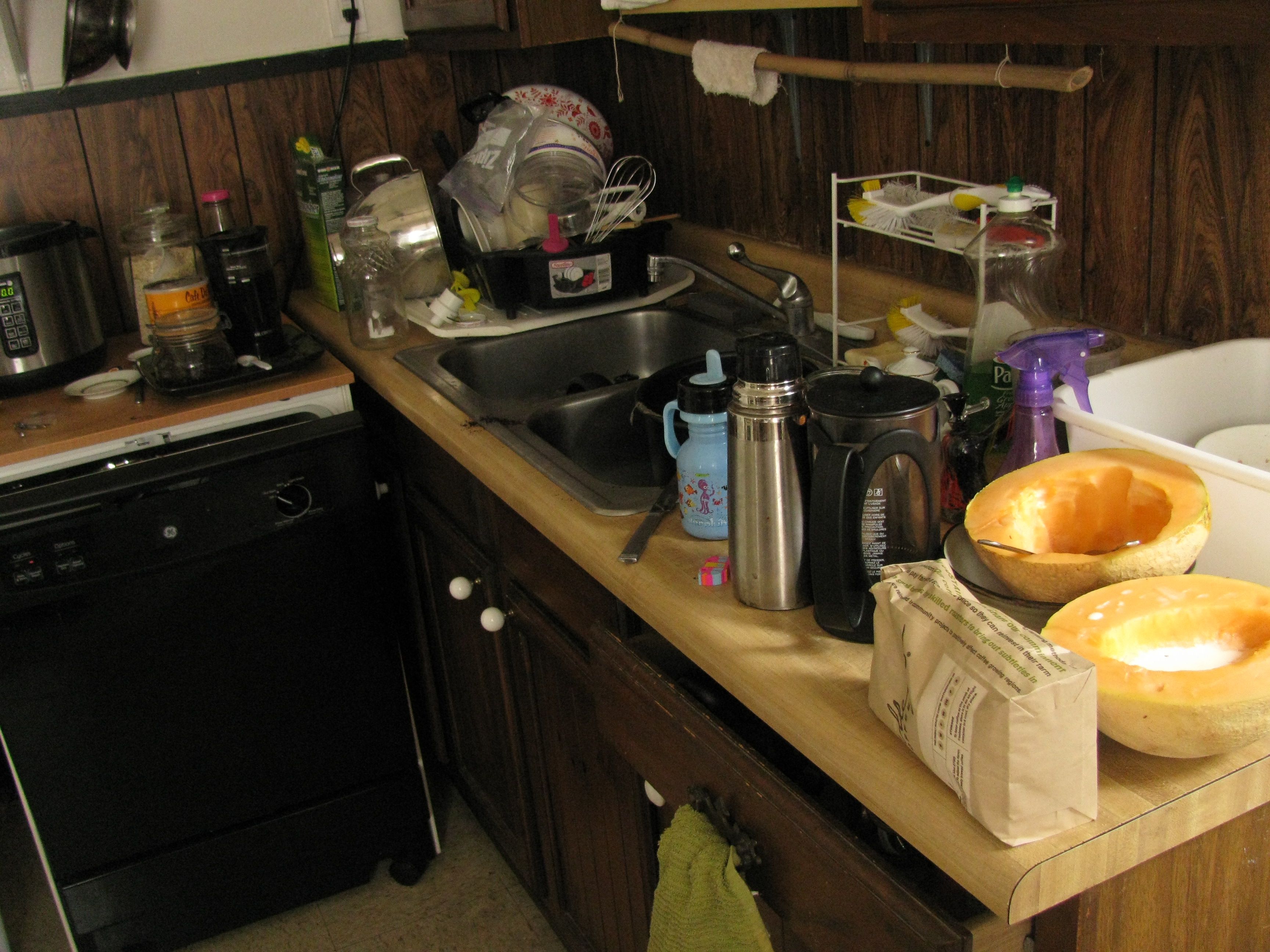 Once the dough was rising, I started looking around with my cleaning eye, and realized there was The Cantaloupe to deal with. Shit.