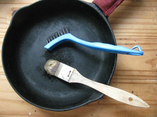 cast iron gear– a stiff nylon scrub brush and a pastry brush for oil