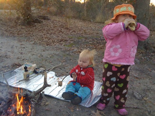 Most people don’t even go camping with little kids. I could just give up and stay home, no one could blame me. But, I love watching their little brains and bodies suck up all that primitive woodsy goodness. They adore playing in the woods, they adore setting up the tent, they adore the campfire. I figure, whatever it takes to get us out there.