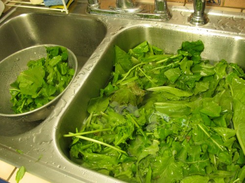 Last week we were gone, so I didn’t get a chance to harvest salad greens, and of course this week it was just out of control.