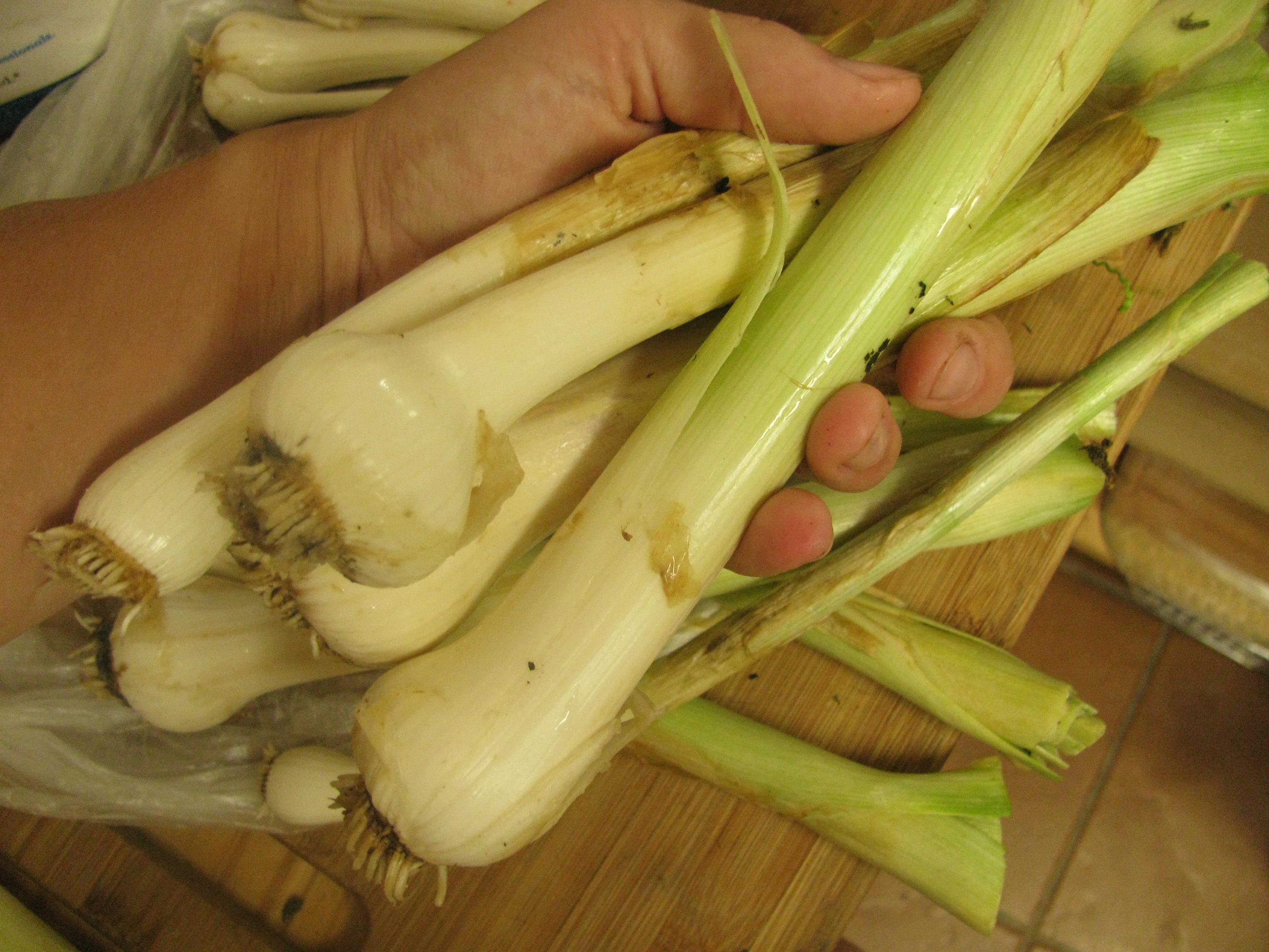 Soon they just flat out were rotting. I pulled what was left, peeled off the rotten layers and got some decent green onions at least. When the formerly verdant green garlic started to lose it’s luster, I didn’t wait so long. I gave them a little time, with a kernal of hope. Then I started pulling them. Same deal, dying and starting to rot from the outside in, but no bulbs.