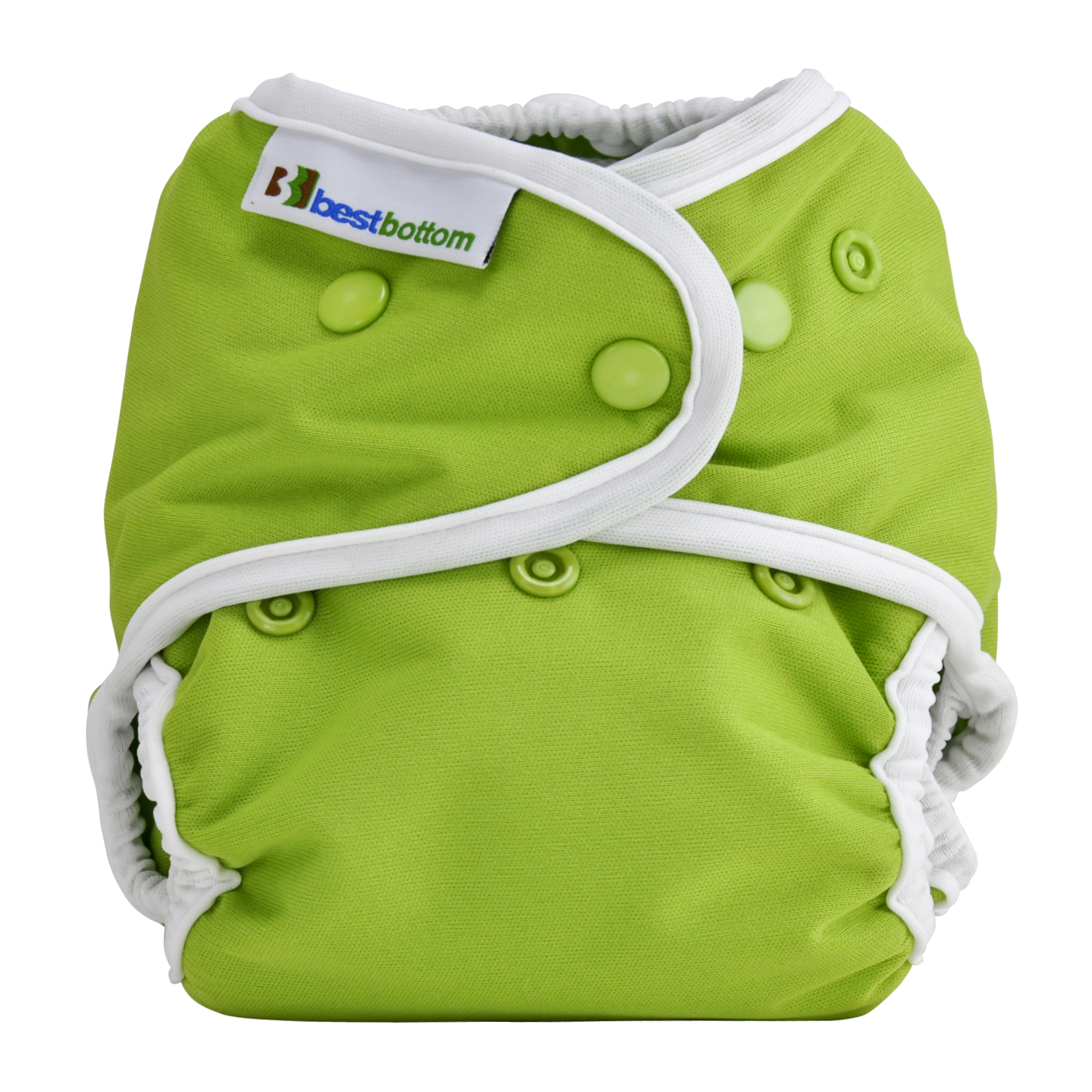 I did have a bad experience with some Thirsty covers that used velcro closures. The velcro was just a straight-up strip (no backing) and over time it started to curl back on itself, exposing the scratchy stuff to my little pudgy boy’s fat thighs. I had to trash them eventually, he was getting welts. I would in general recommend snap closures because of this problem, plus the velcro gets gunked up and has to be cleaned out periodically and just generally wears out faster than snaps. (Although those first all-in-ones I got had velcro, sewed onto a thicker strap, and they have lasted just fine, I still use some of those.) Here’s what my current covers look like, these are Best Bottoms: