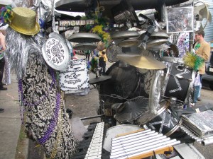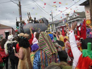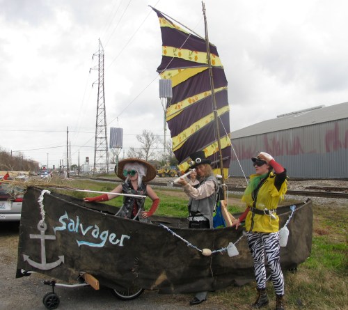 And then there we were, Fat Tuesday, 8:30 am, unloading pieces of the boat by the side of the parade route and re-assembling them into one beauty of a piece of junk.