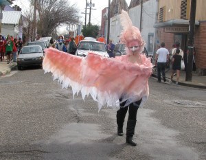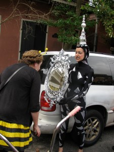 We joined up with the eternally funky and handmade St. Anne’s parade around 9:30. In the morning. There were droves of people already decked out in costumes they’d been working on all month long. Fat Tuesday in New Orleans is a dream for early-to-rise, early-to-bed mamas like myself, who can barely hold our eyes open past 10pm. You can get up at the crack of dawn, party hard for 8 hours and still get home in time for a wholesome dinner and restorative bedtime. My people!