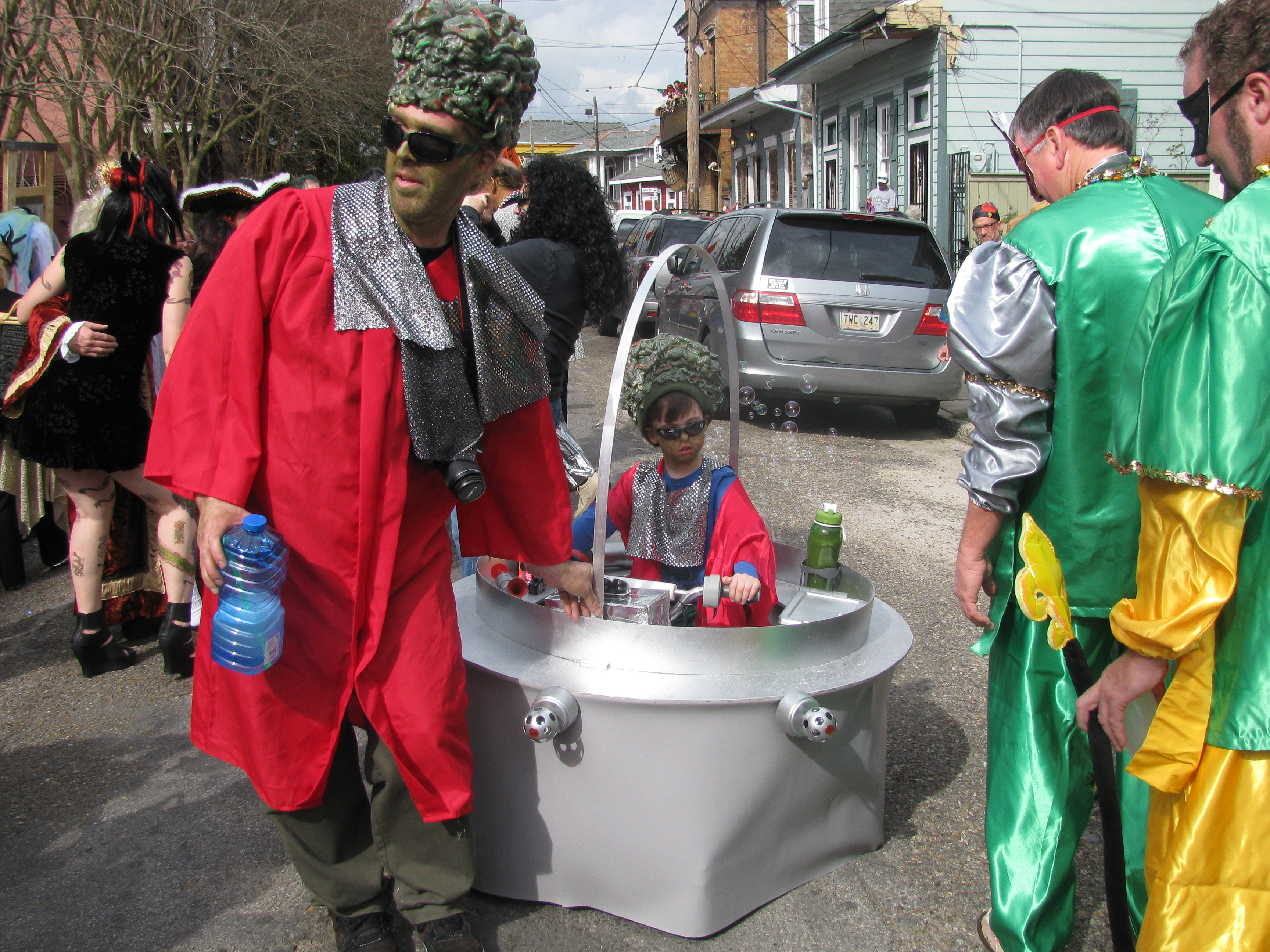 The last few weeks have been quite a haul. I really, really bit off more than I ought to have chewed. The post-apocolyptic Chinese junk came together with only a few moderately debilitating hitches, being in the parade was the experience of a lifetime and Mardi Gras day was a fantastic adventure. But throughout the week leading up to it I got profoundly stressed out about balancing all the work and complication of it with being a mama, there were several times that I adamantly wished I could just back out without losing all the time and money I’d already put into it.