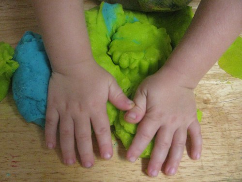 Playdough—we make our own so we never have to get our panties in a bunch about mixing the colors or leaving the lid off. When it’s all brown or dried out we just make up a new batch.