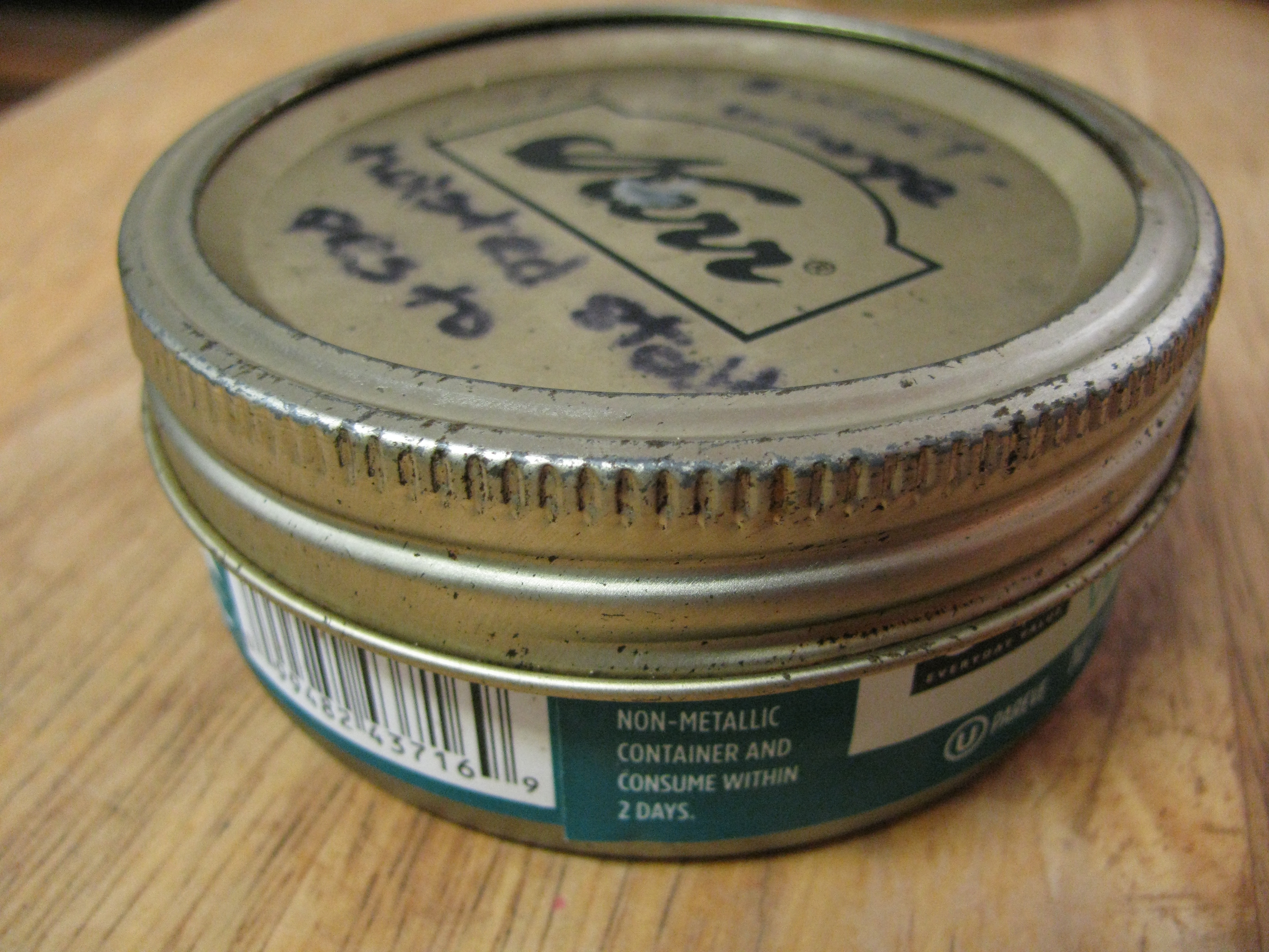 I know we’re not supposed to keep the tuna in the can at all (or even buy tuna in cans in the first place), but I don’t need any extra dishes in my sink thank you very much. I open the can, drain the water out, mix the mayo in right there in the can, apply to sandwiches and, if there’s any leftover at all, snap a lid on and put it in the fridge. It gets eaten up so soon that I have decided not to worry about it.