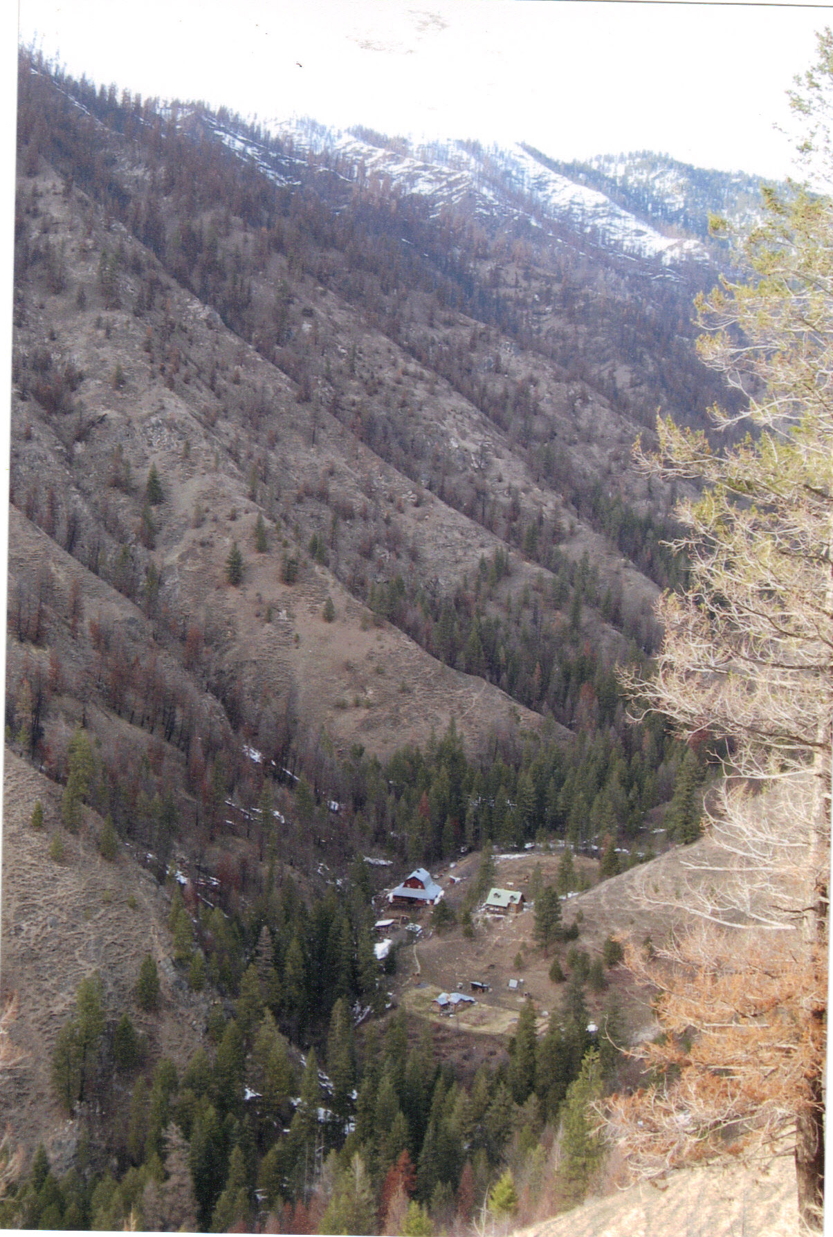 In 2006, my ex-significant other, M, and I did trail restoration work in central Idaho. One job was near an in-holding surrounded by national forest and designated wilderness. The in-holdings along the Salmon River, commonly called “ranches” although the days of cattle rustling are long over, are a mix of privately owned properties or commercial guest ranches catering to fisherman and hunters. This particular ranch was private ownership and located three miles up a drainage which dumped into the river. We cleared the trail that connected the ranch to the river and fell in love with the landscape.
