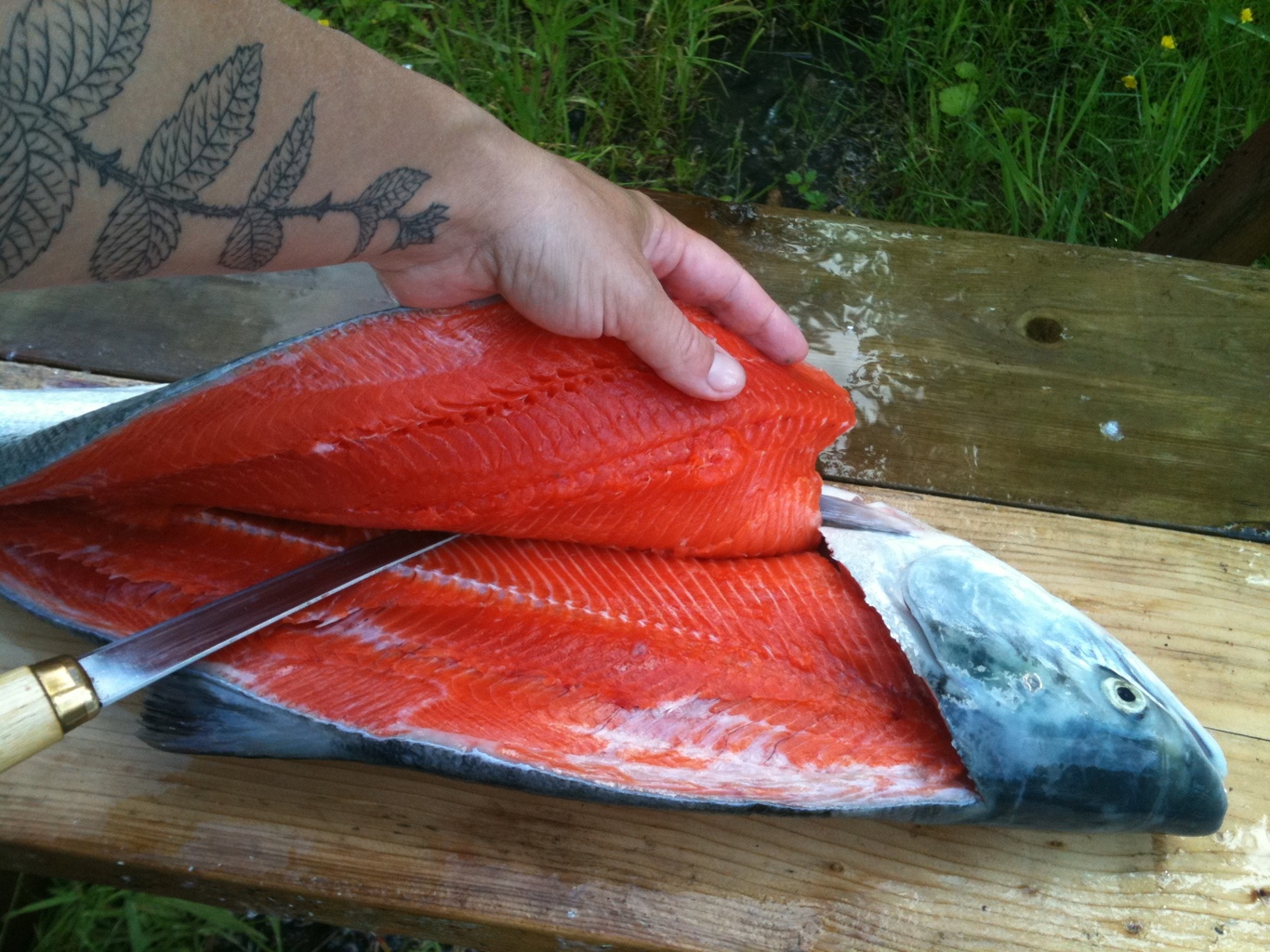 Awesome. One of my favorite memories of our trip to Haines was getting to help pull down your smoked salmon from the drying rack. Actually, it wasn’t so much the pulling down of the salmon, the licking of my fingers afterward that I remember so fondly. And, BTW, I can’t help but admire your tattoo! Bold! It makes total sense.