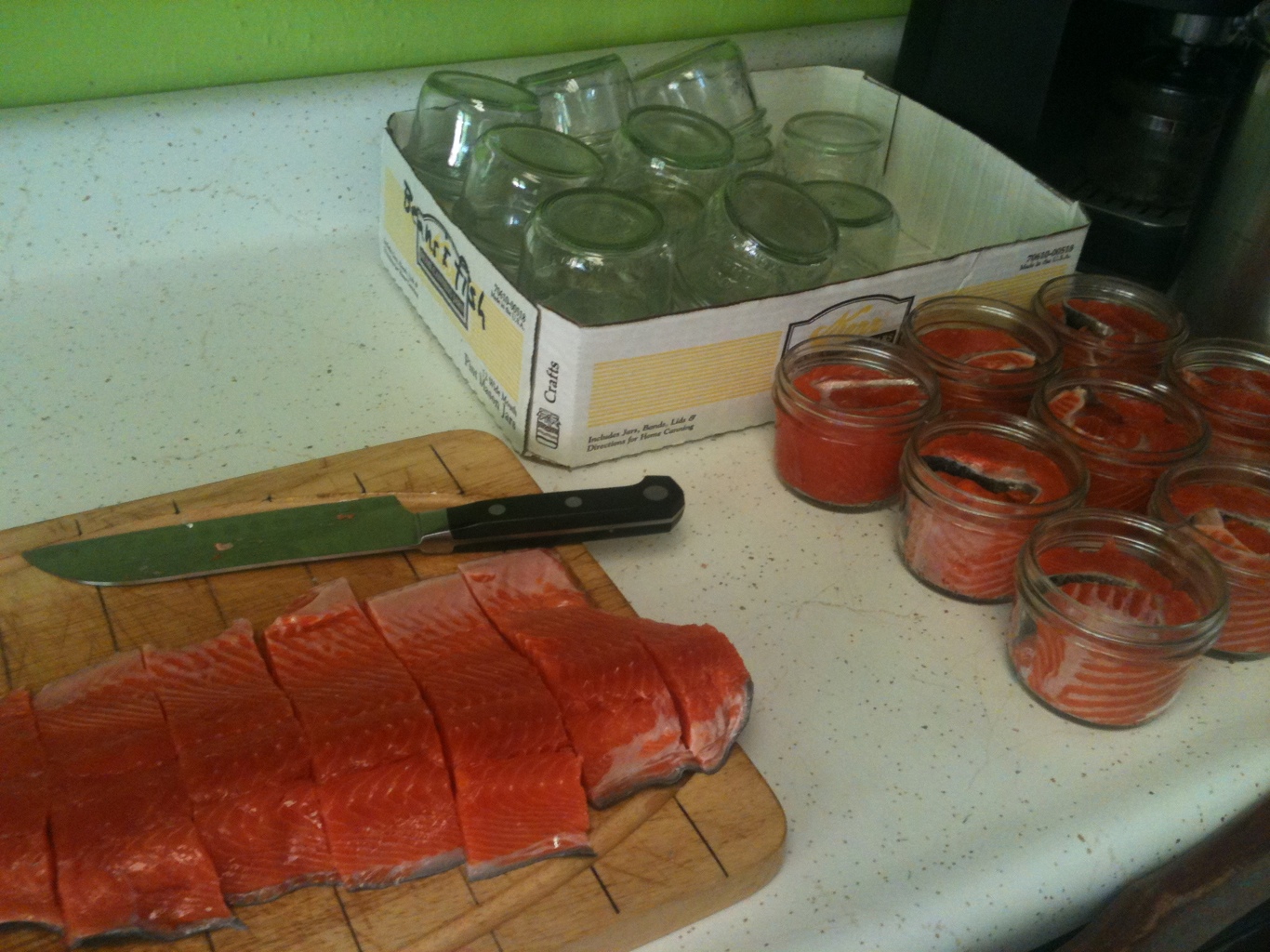 My most recent activity was 20 fat sockeye salmon bought from a friend who commercial fishes. I got them at a great price straight off her boat, which meant days of processing to follow. Gutting, filleting, vacuum packing for the freezer, smoking and canning, and because I’m a fucking freak, don’t forget making fish stock out of those precious carcasses even though all this was done while My Man was out of town and I was/am solo parenting.